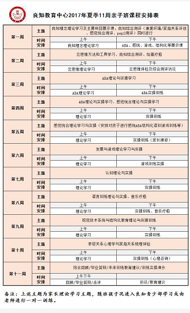 在良知培训,师资力量强,课程内容丰富。有ABA、感统、结构化、语言、游戏、绘画疗愈、音乐、心灵疏导、家庭梳理、手工制作、超市购物等。目前给家长授课老师主要是朱素云老师、张松涛老师、梅知老师、王欢老师。